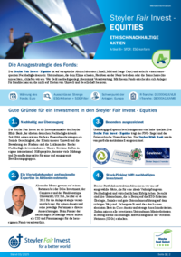 Werbeinformation Steyler Fair Invest EQUITIES ETHISCH-NACHHALTIGE AKTIEN Artikel 8+ SFDR: ESG-konform Die Anlagestrategie des Fonds: Der Steyler Fair Invest - Equities ist auf europäische Aktien…